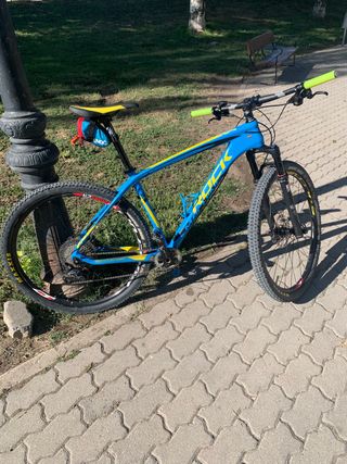 en muy buen estado, muy ligera y rápida. talla XL .horquilla y transmisión recién hechas con cambio de plato y cadena, lleva ovalado de 32T. cubiertas y pastillas en buen estado, ruedas tubelizadas. tienes para montar meses sin hacerle nada. muy cuidada y mantenimientos al día. se entrega sin pedales. todo el montaje lo tienes en decathlon.es/es/p/bicicleta-de-montana-29-carbono-rockrider-race-740-azul-nx-gx-eagle/_/R-p-323483?mc=8615562&c=AZUL es la misma bici cambiado un poco del cuadro.