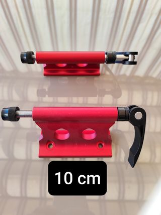 2 Soportes para horquilla delantera de bicicleta, color rojo. Está en perfecto estado. - Medidas: 10 cm. - Material: Aluminio. - Incluye 2 soportes.