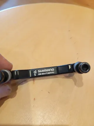 Adaptador para disco de freno de bicicleta Shimano. - Permite montar discos de 180mm en cuadros o horquillas diseñados para 160mm. - original shimano sm-ma-f180/p2 -Completo con tornillos alargados