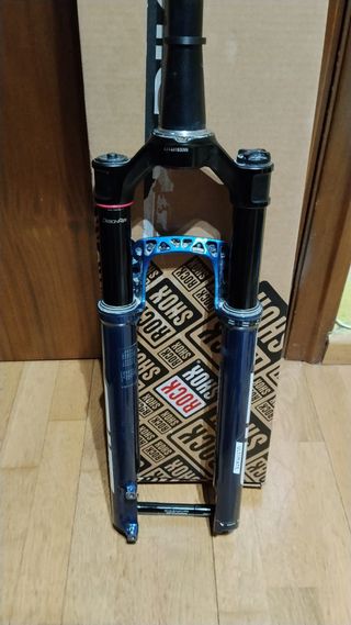 Horquilla Rock Shox SID SL en color azul. - Modelo SL Ultimate. - Eje pasante. - Tubo de dirección cónico. Tubo cortado a 16cm Usada 5 veces ,nueva!