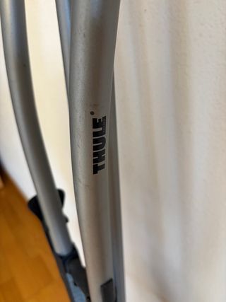 Portabicicletas de techo Thule en excelente estado, casi nuevo. - Diseño robusto y duradero. - Acabado plateado y negro. - Cerradura de seguridad