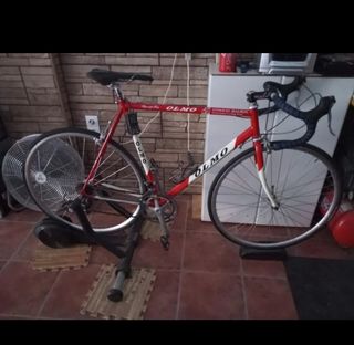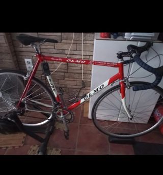 Bicicleta de carretera Olmo en buen estado. Ideal para principiantes o para uso ocasional. Para rodillo - Marca: Olmo - Tipo: Carretera - Color: Rojo y blanco - Se encuentra en buen estado. Revisada cables, fundas, cinta manillar - 8 coronas - Material: Acero microaleado 25CrMo4 (Cromo-Molibdeno 4) -Talla L 180