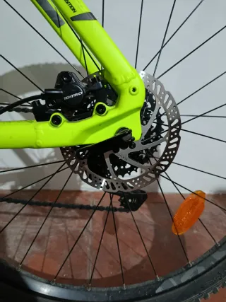 Bicicleta de montaña Rockrider en llamativo color neón. - Cuadro de aluminio. - Ruedas de 27.5 pulgadas. - Frenos de disco. - Suspensión delantera. - Talla XL * NUEVA * Apenas 10 salidas, vendo por comprar una superior.