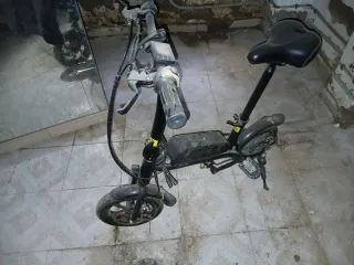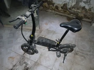 Minibicicleta eléctrica que necesita reparación. Ideal para quienes disfrutan de proyectos de restauración o para piezas. - Estructura plegable. - Batería incluida. Que no servirá de tiempo sin cargarse - Ruedas de 12 pulgadas.