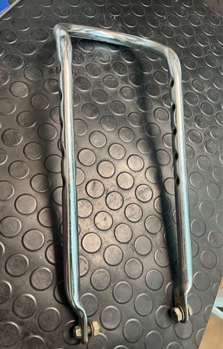 Respaldo cromado para motoretta. Pieza metálica con acabado brillante. - Diseño curvo. - Base con orificios para fijación. - Tornillería incluida.