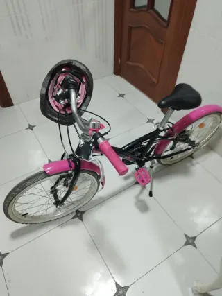 Bicicleta infantil B'TWIN Original 500, ideal para niños de 6 a 9 años. - Guardabarros y caballete - Incluido casco color rosa original - Tamaño de rueda: 20 pulgadas. - Color: Negro y rosa.