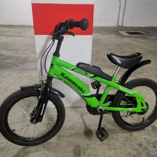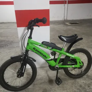Bicicleta infantil de la marca Kawasaki, modelo FX16, en llamativo color verde. - Ruedas de 16 pulgadas. - Frenos delanteros y traseros. - Sillín ajustable. - Guardabarros delantero y trasero.