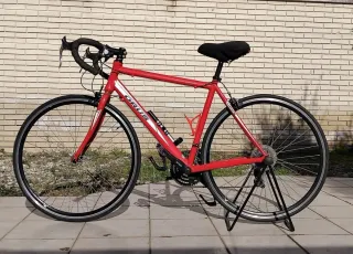 Bicicleta de carretera de color rojo, ideal para entrenamientos y paseos. Marca Orus. Nueva costó más de 300€. - Cuadro de aluminio. - Frenos de disco. - Sillín negro. - Portabidón rojo. Cuidada y no muy usada...por eso la vendo😅 De regalo inflador y cubre sillín con luz incorporada🎁