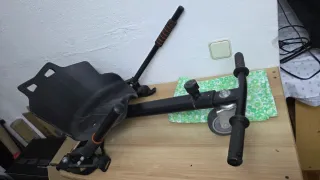 Accesorio para hoverboard con asiento. - Asiento negro. - Manillar ajustable. - Ruedas delanteras.