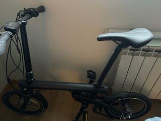 Bicicleta eléctrica plegable de color negro. Ideal para desplazamientos urbanos. - Diseño moderno y funcional. - Ruedas de tamaño reducido. - Sillín ajustable en altura. -Batería en buen estado