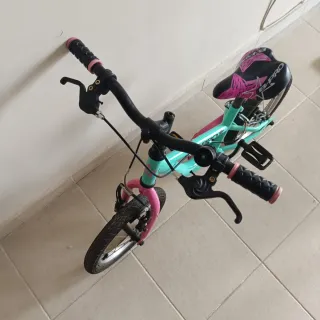Bicicleta infantil B-Pro en color turquesa y rosa. - Ruedas de 16 pulgadas. - Sillín con diseño. - Timbre rosa en el manillar. - Tengo los ruedines para los que no sepan ir a dos ruedas