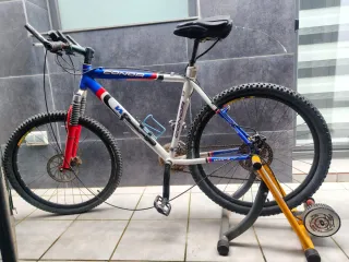 Bicicleta de montaña Conor con rodillo de entrenamiento incluido. Lista para usar. SE VENDE POR SEPARADO, Preguntar precio. - Cuadro de bicicleta de montaña. - Incluye rodillo de entrenamiento. - Discos de freno. - Ruedas nuevas. - Sillín original un poco desgastado - Sillín de la foto acolchado nuevo sin uso. - Pegatinas originales. Tiene años pero la bici va perfecta, necesitaría puesta a punto de engrase y poco más, se vende por cambio a otra, y rodillo sin uso. Está nuevo, me lo regalaron y no se utiliza, va perfecto con varias velocidades de dureza. Ideal para estar en casa en días malos. DETALLES, PREGUNTEN SIN COMPROMISO