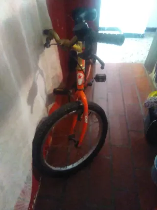 Bicicleta infantil de color naranja, con un diseño llamativo y buena calidad. - Ruedas de 20 pulgadas. - Frenos de mano. - Sillín ajustable.