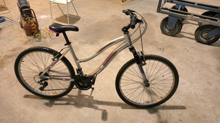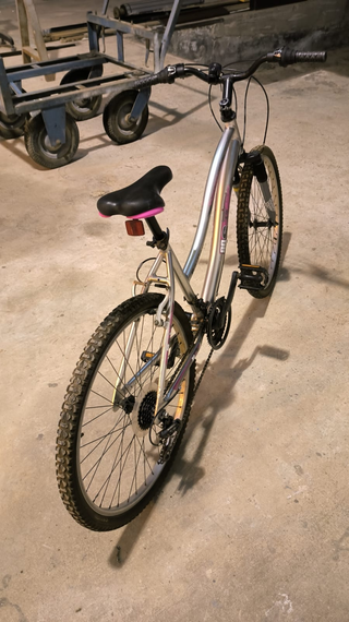 Bicicleta con poquísimo uso (Se habra usado 3 veces como mucho) . - Cuadro de color plateado con detalles lilas. - Suspensión delantera. - 7 marchas