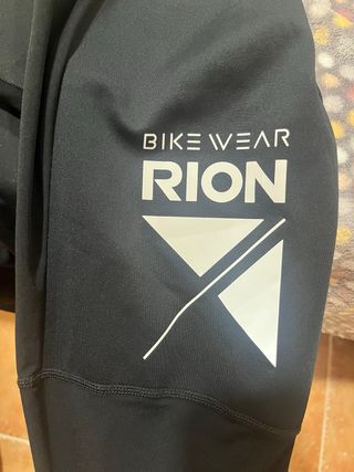 Culotte de ciclismo de la marca RION en color negro. Pone en la etiqueta S pero corresponde a una M,talla grande. - Tejido técnico. - Diseño con logo RION y BIKE WEAR. INTERCAMBIO POR CULOTTE LARGO TALLA XS.