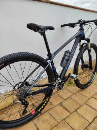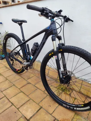 Bicicleta marca GHOST LECTOR de fibra de carbono talla M rueda 29. -Horquilla ROCK SHOCK de aire con bloqueo en el manillar. - Bielas SHIMANO XTR (superligeras) - Cubiertas MAXXIS 2.10 delantera y 2.40 trasera. Tubeless (Sin cámara para menor peso). - Cambios SHIMANO XT Deore 2×9 velocidades. - Frenos hidráulicos SHIMANO Deore (manetas y pinzas). Disco de 180mm. delante y 160mm. detrás. - Manillar de carbono. - Cuenta kilómetros sin cable, hinchador de aluminio y botellero incluidos. Lista para usar.