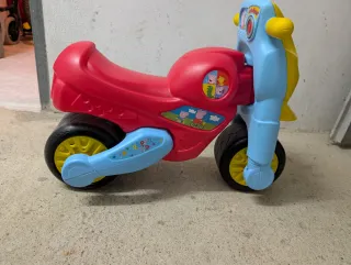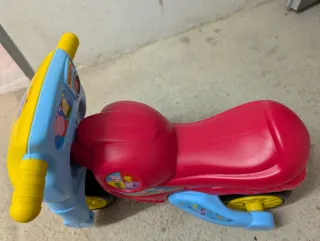 Moto correpasillos de Peppa Pig, ideal para los más pequeños. Tiene un diseño divertido y colorido. - Colores: rojo, azul y amarillo. - Decorada con personajes de Peppa Pig. - Incluye un botón de sonido en el manillar.