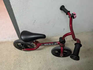 Bicicleta de equilibrio RED BULLET para los más pequeños. Ideal para aprender a mantener el equilibrio. - Color rojo brillante. - Diseño sin pedales. - Ruedas negras. - Asiento negro. - Manillar con puños negros y timbre rosa.