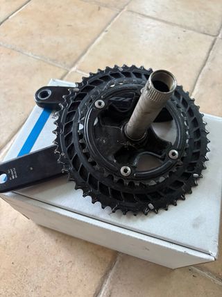 Bielas Shimano 105 Di2 R7100 170 mm – 12v – platos incluidos Bielas Shimano 105 Di2 R7100 originales en 170 mm, para transmisión de 12 velocidades. ✔ Incluye platos Shimano 105 12v ✔ Funcionamiento perfecto ✔ Eje y roscas en muy buen estado ✔ Desgaste estético normal en los platos por uso (ver fotos), sin afectar al rendimiento Grupo ideal para carretera, fiable y con el salto de calidad del 105 de 12v. ⸻ 🔹 DETALLES TÉCNICOS • Marca: Shimano • Modelo: 105 Di2 R7100 • Longitud bielas: 170 mm • Velocidades: 12v • Uso: Carretera • Incluye: Bielas + platos • Estado: Usado – buen estado funcional