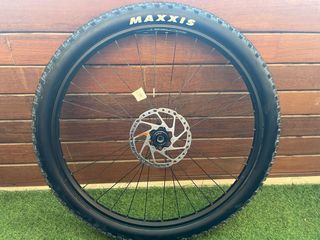 Rueda delantera Mavic Crossmax de 29 pulgadas. - Llanta con diseño gráfico. - Incluye disco de freno. - Neumático Specialized Fast Trak Control.