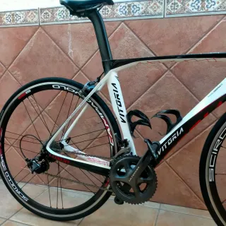 Bicicleta de carretera Vitoria con cuadro blanco y detalles en rojo.11 velocidades.el precio no es negociable - Cuadro de carbono. - Ruedas Campagnolo Scirocco. - Manillar de carretera. - Portabidones.