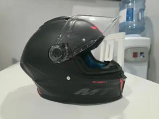 Casco integral helmet talla M en color negro con detalles en rojo.regalo funda - Diseño deportivo. - Visera transparente. - Interior cómodo.
