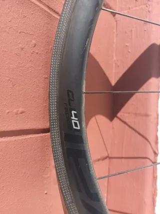 Rueda delantera Roval CL40 Rapide. - Llanta de carbono, pista de frenado en muy buenas condiciones. - Perfil de 40mm. - La rueda tiene algunas marcas de uso, pero ningún golpe ni llantas. El carbono eata perfecto