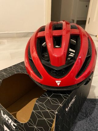 Casco de bicicleta WRC en color rojo. Diseñado para ofrecer protección y comodidad. - Diseño aerodinámico con múltiples ventilaciones. - Incluye etiqueta de certificación EN1078. - Marca: WRC World Race Conor.