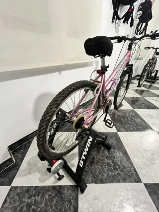 Se vende bicicleta de montaña en color rosa, ideal para entrenamientos en casa con su rodillo. Recogida en Cádiz capital. - Bicicleta marca Boomerang. - Modelo Weekend. - Incluye rodillo de entrenamiento.