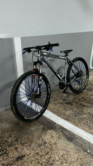 Bicicleta de montaña con ruedas de 29 pulgadas. Con rueda trasera maxiss, suspension delantera rock shok de aire, cambio shimano xt. Esta todo perfecto, unico desperfecto es que le falta un radio - Cuadro de aluminio. - Suspensión delantera. - Frenos hidraulicos