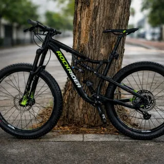Rockrider AM100S All Mountain doble suspensión 27,5+ talla M. Bicicleta muy cuidada y en excelente estado. Monta transmisión SRAM NX Eagle 12 velocidades, frenos de disco hidráulicos y ruedas anchas 27,5+ para máximo agarre y comodidad en montaña. Muy estable y divertida para trail y rutas técnicas. Cuadro compatible con ruedas de 29”, lo que permite adaptarla fácilmente según preferencias. Talla M (aprox. 1,70–1,80 m). Lista para usar.