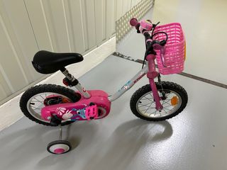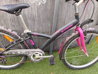 Bicicleta infantil de la marca Btwin, ideal para iniciarse en el ciclismo. - Cuadro resistente. - Diseño en color negro con detalles en rosa. - Ruedas de tamaño adecuado para niñas.Bicicleta btwin poply 500 a recoger en Arcos de la Frontera solo hay que hacerle una puedta a punto
