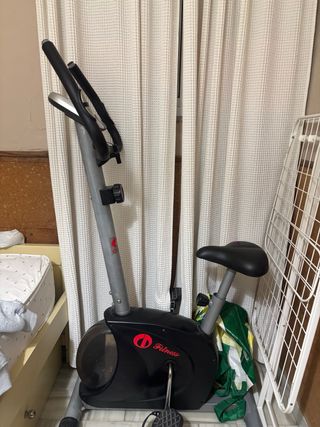 Bicicleta estática de la marca Fitness, ideal para entrenamientos en casa. Su diseño es moderno y funcional. - Manillar ergonómico. - Sillín ajustable. - Pedales con agarre.