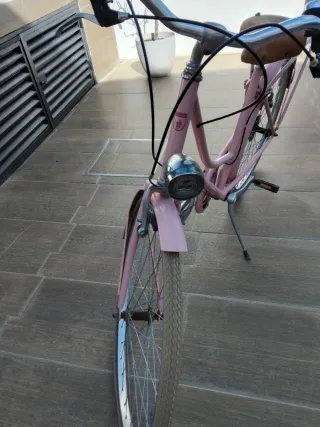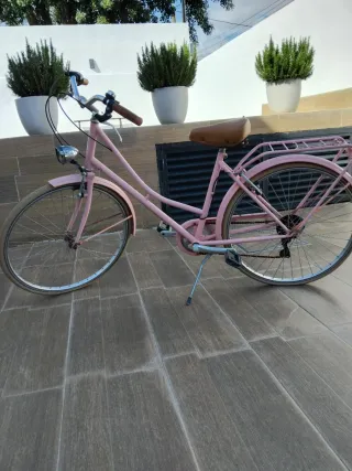 Bicicleta clásica de estilo vintage, ideal para paseos urbanos o como proyecto de restauración. - Color rosa pastel. - Sillín - Guardabarros. - Pata de cabra.