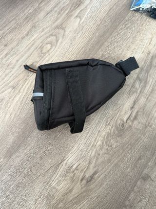 Bolso negro para sillín de bicicleta. (NUNCA SE HA USADO ESTA NUEVO A ESTRENAR) - Material textil resistente. - Cierre de cremallera. - Correa de sujeción.