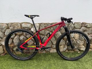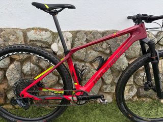 Bicicleta de montaña Trek Top Fuel 9 en color rojo. - Cuadro de aluminio aligerado(muy poco peso) - Suspensión delantera y trasera. - Ruedas maxxis de 29 pulgadas nuevas 2.35 y 2.25 Tubeless. -Cambios sram nx 1/12 y pulsadores gx. -Frenos sram level. -Puños RIFYL. -Sillín selle Italia -Talla 17.5 -Se entrega con pedales normales. Prácticamente nueva, muy poco uso debido a falta de tiempo. Cualquier duda por privado,abstenerse ofertas absurdas.