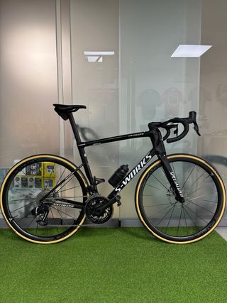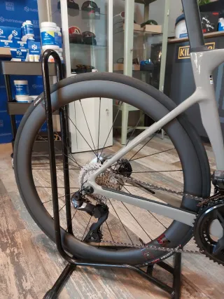 Bicicleta de carretera Winspace T1550 Gen2 en color blanco. Montada a capricho, cuadro carbono aero con sello UCI talla L (56), grupo shimano dura-ace di2 R9270,pedales shimano dura-ace,ruedas finnale de carbono con bujes dt swiss 180 con neumaticos tubeless Continental gp5000,discos galfer,manillar vision metron 5d,sillin fizik carbono,rodamientos ceramicos bikone,tornilleria de titanio. Totalmente NUEVA A ESTRENAR. La vendo por lesion. No se ha estrenado tiene 0 km. Toda montada me costo mas de 6000€. Pesa con pedales y todo como las fotos 7,450 kg. NO CAMBIOS. NO ENVIO. tel 645138253