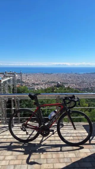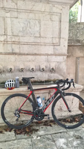 Bicicleta de carretera Felt AR5 en color negro y rojo. Talla M. Revisada y a punto para disfrutarla. Bici muy ligera. Incluye rodillo Elite gel Crono fluidprimo elastogel. - Cuadro de carbono. - Ruedas de perfil vision trimax 35kb. - Transmisión Shimano 52-36/11-28 - Pedales y portabidones incluidos.