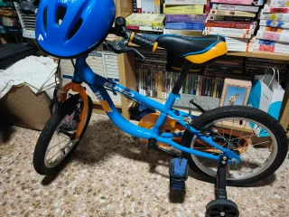 Se vende bicicleta infantil B-PRO de 16 pulgadas, ideal para los más pequeños. Incluye casco protector. - Rueda de 16 pulgadas. - Color azul y naranja. - Casco infantil azul.
