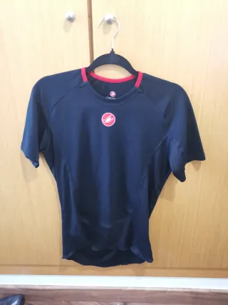 Camiseta interior de manga corta Castelli Prosecco. - Color azul marino. - Cuello con ribete rojo. - Logo de Castelli en el pecho.