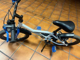 Bicicleta infantil de color blanco con detalles en azul. Ideal para los más pequeños. - Ruedas de 16 pulgadas. - Frenos delanteros y traseros. - Sillín ajustable. - Incluye ruedines.