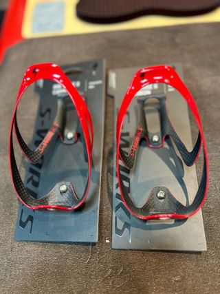 Portabidones Specialized S-Works de carbono en color rojo. Diseño ligero y resistente. 1 portabidon 45€ 2 portabidones 78€ ( el pvp de cada porta son 75€ ) - Material: Carbono - Color: Rojo - Marca: Specialized S-Works -Peso 20 gr.