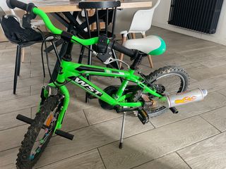 Bicicleta infantil de color verde, ideal para niños de hasta 5 años. Perfecta para iniciarse en el mundo del ciclismo. Está en buen estado, pero hay que cambiarle la rueda trasera. No hago envíos