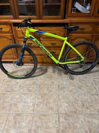 Bicicleta de montaña Rockrider en talla XL, con suspensión delantera. Está en buen estado, aunque con algunas señales de uso. - Modelo Rockrider. - Talla XL. - Suspensión delantera.