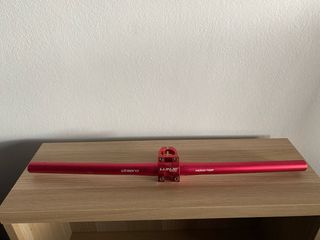 Manillar de bicicleta rojo en perfecto estado. Es ligero y resistente. 28mm - Marca: LUNJE - Modelo: Monster - Color: Rojo - Material: Aluminio