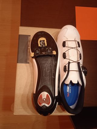 Zapatillas de ciclismo Sidi CFast, talla EUR 47 (US 11.9). Son de color blanco. Están nuevas, en su caja original. Recién estrenadas - Modelo: Sidi CFast - Talla: EUR 47 / US 11.9 - Color: Blanco -Horma de pie normal y se venden sin las calas.