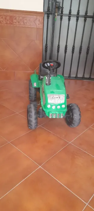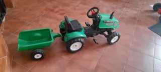 Tractor de pedales de color verde, perfecto para que los más pequeños disfruten al aire libre. Incluye un remolque. - Diseño inspirado en un tractor. - Ruedas resistentes. - Volante para dirigir.