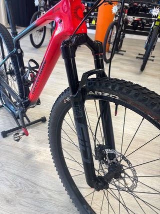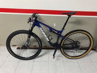 Bicicleta Massi Aire SL del año 2023. Talla M Diseñada para ofrecer un rendimiento excepcional en terrenos variados. - Cuadro de carbono. - Suspensión delantera FOX 34 step cast 120mm, trasea 100 - Frenos de disco hidráulicos SHIMANO XT con disco 180 delantero y 160 trasero - Transmisión Shimano xt - Bielas shimano XT - Cambio SRAM X01 - Tija telescopica 125