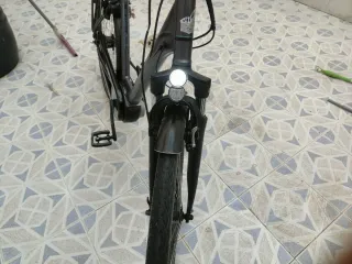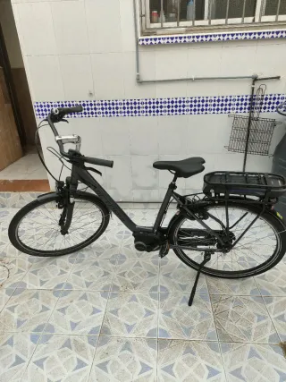 Bicicleta eléctrica marca Victoria en color negro. Ideal para desplazamientos urbanos. - Cuadro robusto. - Ruedas de buen tamaño. - Portaequipajes trasero. - Cesta delantera.