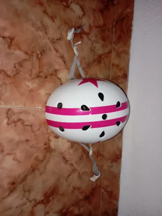 Casco de protección BTWIN con un diseño llamativo en rosa y blanco. - Diseño con estrellas y rayas. - Múltiples orificios para ventilación. - Correas ajustables para un ajuste seguro.